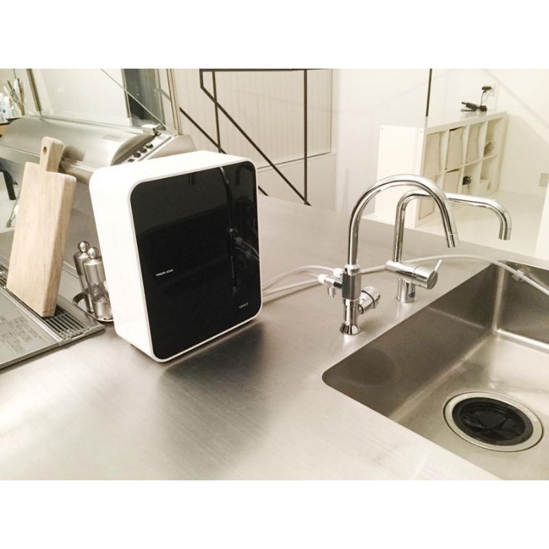 - Máy lọc nước Trim Ion Grace thiết kế sang trọng với mặt kính bóng đen tuyền giúp tăng tính thẩm mỹ cho mọi không gian bếp.