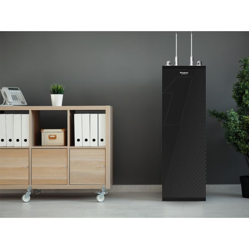 - Thiết kế tủ đứng hiện đại, gam màu đen sang trọng: Máy lọc nước RO Kangaroo KG100EHC có thiết kế SLIM tràn viền sang trọng, kính cường lực đen ấn tượng tạo điểm nhấn nổi bật cho mọi không gian nội thất. Thiết bị có kích thước 33.6cm x 111cm (Ngang x Cao), có thể đặt ở mọi vị trí mà không chiếm quá nhiều diện tích, phù hợp để sử dụng ở các gia đình, văn phòng, trường học,…