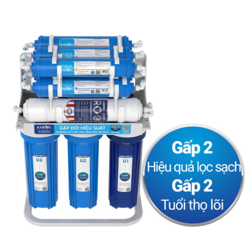 Công nghệ lọc Smax RO: Gồm lõi Smax RO là trái tim của máy lọc nước, giúp loại bỏ hơn 99,99% clo, dầu, virus, vi khuẩn, amip, asen, các ion kim loại và các chất độc hại trong nước.