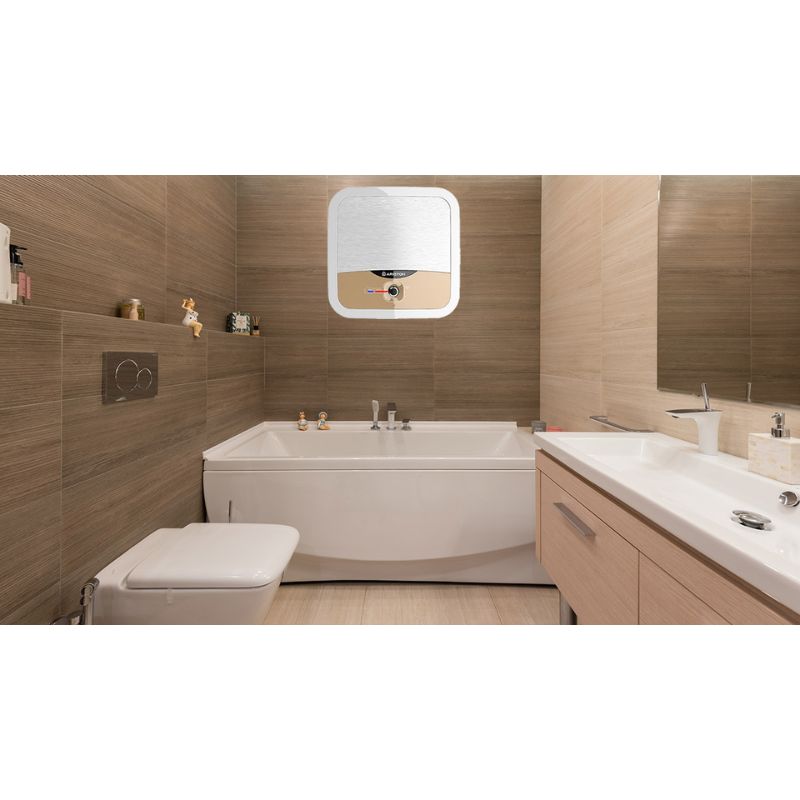 - Máy nước nóng gián tiếp Ariston gây ấn tượng bởi vẻ ngoài hiện đại, gam màu trung tính mang đậm phong cách Ý sẽ là điểm nhấn nổi bật cho không gian phòng tắm của bạn.
