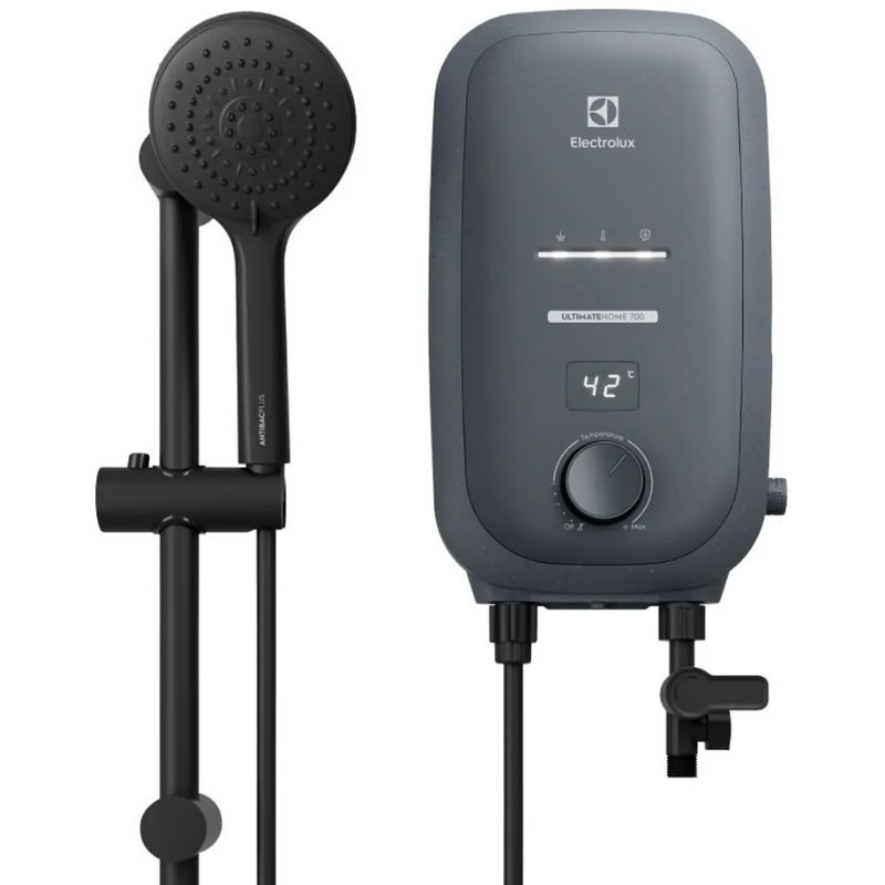 Máy Nước Nóng Trực Tiếp Electrolux 4500W EWE451RB-G6 có thiết kế với màu xám đậm hiện đại, công suất 4500W. Máy trang bị vòi sen kháng khuẩn AntiBacPlus 5 chế độ phun theo nhu cầu sử dụng, độ nóng tối đa khoảng 45°C. Được tích hợp bơm trợ lực, khả năng làm nóng nhanh, có cầu dao chống rò điện ELCB khi sử dụng, vỏ chống thấm nước IP25.