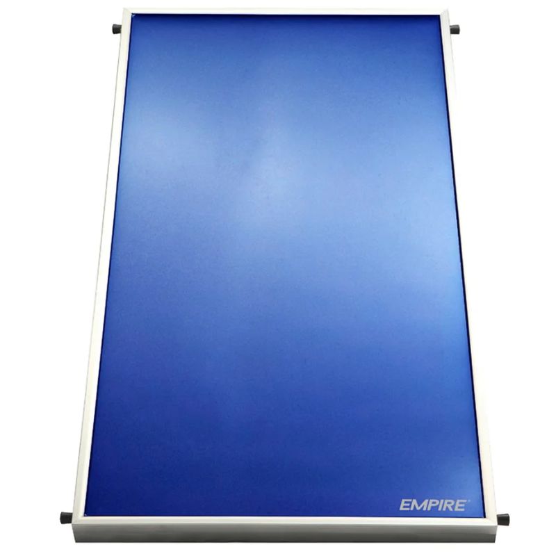 - Máy nước nóng năng lượng mặt trời tấm phẳng Empire E-PLAT 300 300 Lít được trang bị 2 tấm thu nhiệt phẳng có kích thước 2000 x 1250 x 80mm, tăng diện tích bề mặt tiếp xúc với ánh sáng mặt trời. Kính cường lực dày 3.2mm cho khả năng hấp thụ nhiệt lên đến 95% kể cả những ngày âm u ít nắng, đảm bảo nước nóng luôn sẵn sàng phục vụ các thành viên trong gia đình.