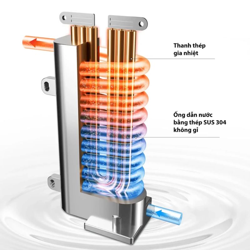 - Thanh nhiệt tách rời nguồn nước: Tự động điều chỉnh công suất làm nóng theo mức nhiệt độ bạn chọn, tối ưu hóa hiệu năng và tiết kiệm năng lượng.
