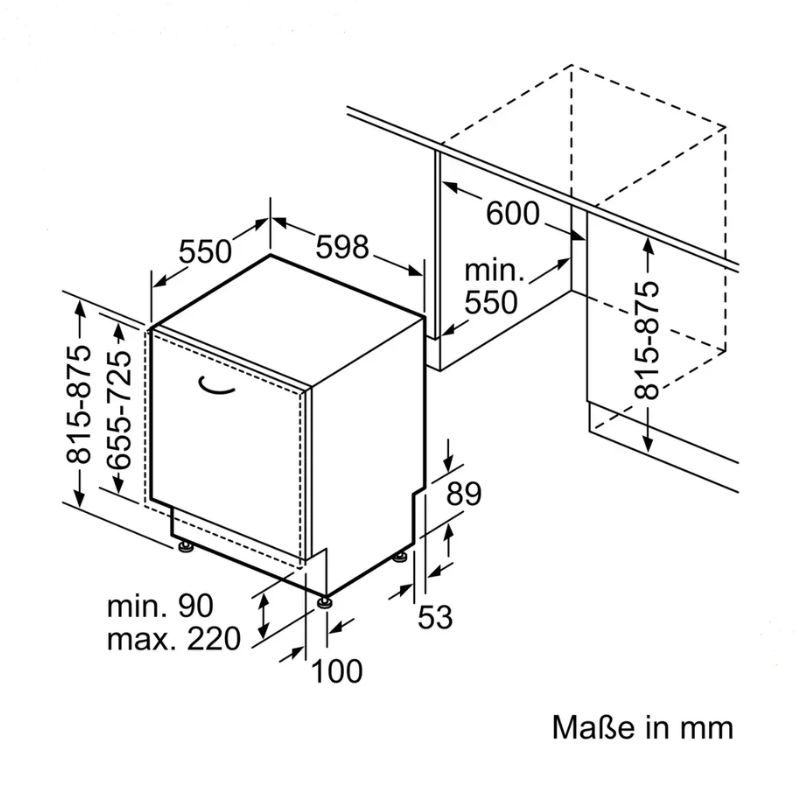 | Chiều rộng hộc tủ tối thiểu | 598 mm |