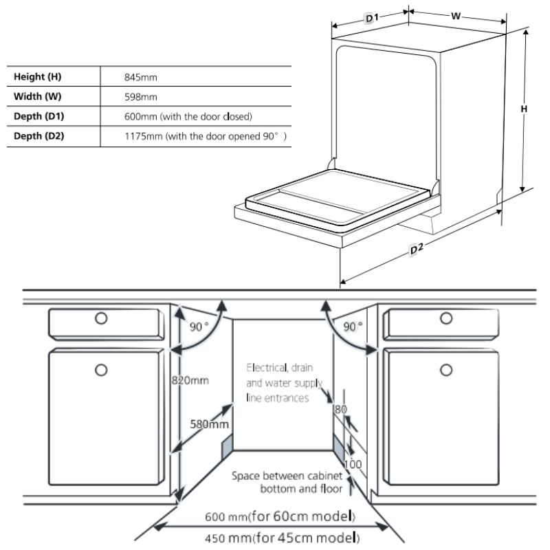 Thông số kỹ thuật Máy rửa bát độc lập Brandt BDF54DXA