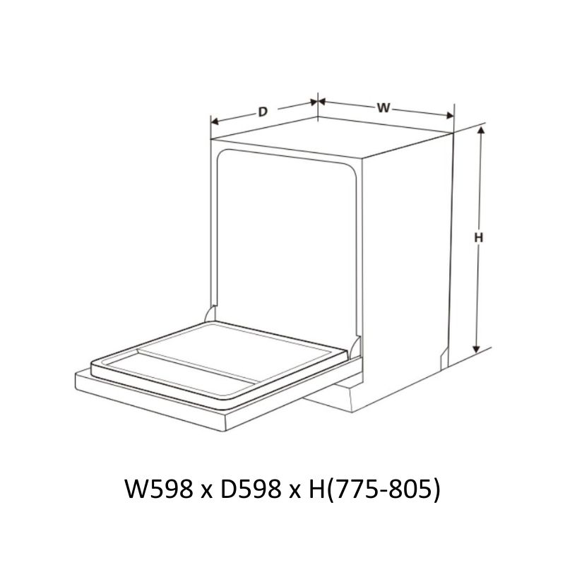 - Kích thước khoét âm tủ: 605W x 605D x 780-810H mm.