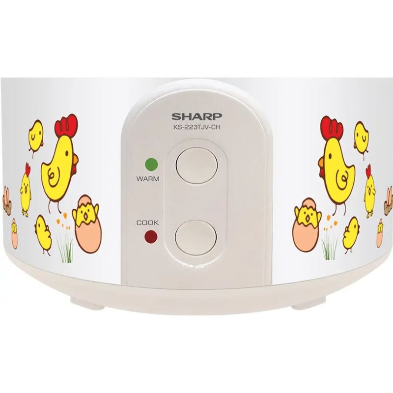 - Thiết kế trẻ trung, tiện lợi: Nồi cơm điện Sharp KS-223TJV-CH có kiểu dáng nhỏ gọn, phù hợp với mọi không gian bếp. Với quai xách chắc chắn, sản phẩm giúp bạn dễ dàng di chuyển đến bất kỳ vị trí nào. Vỏ ngoài được in họa tiết hoạt hình dễ thương, mang đến cảm giác trẻ trung và tươi mới cho không gian nấu nướng.