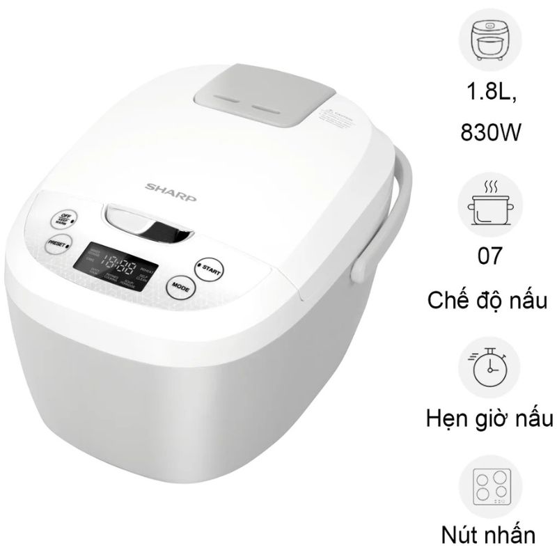 - Dung tích 1.8L, công suất 830W mạnh mẽ: Phù hợp cho gia đình 4-6 người, giúp nấu cơm nhanh chín, tiết kiệm điện và thời gian nấu.