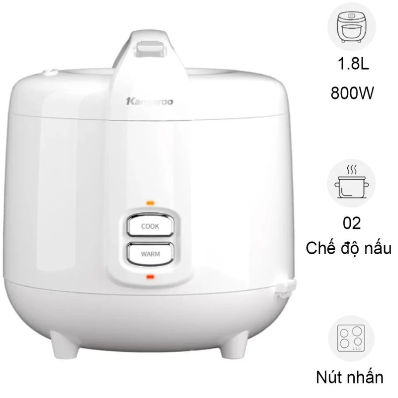 - Kiểu nắp gài dễ dàng sử dụng: Kangaroo KG18RC9 1.8 lít là dòng nồi cơm điện nắp gài của thương hiệu Kangaroo (Việt Nam), sản xuất tại Trung Quốc. Nồi có kích thước 32.1 x 32.1 x 33.3 cm (Ngang x Sâu x Cao), trọng lượng 2.9kg, dễ dàng đặt ở bất cứ đâu trong bếp.