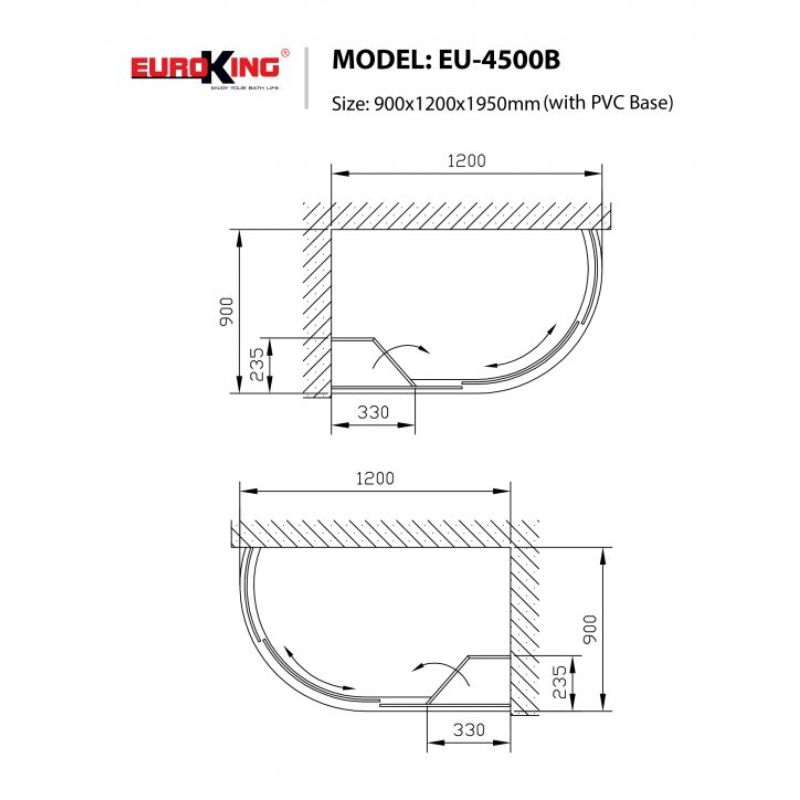 - Kích thước: vách kính phòng tắm với kích thước 900x1200x1950mm