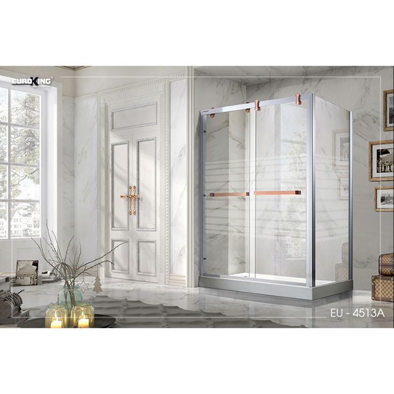 - Phòng tắm vách kính EU-4513A có thiết kế hình khối chữ nhật bao quanh là các tấm kính cường lực vô cùng chắc chắn, có 2 kiểu hoa văn để lựa chọn phù hợp sở thích: dạng sọc ngang và dạng caro.
