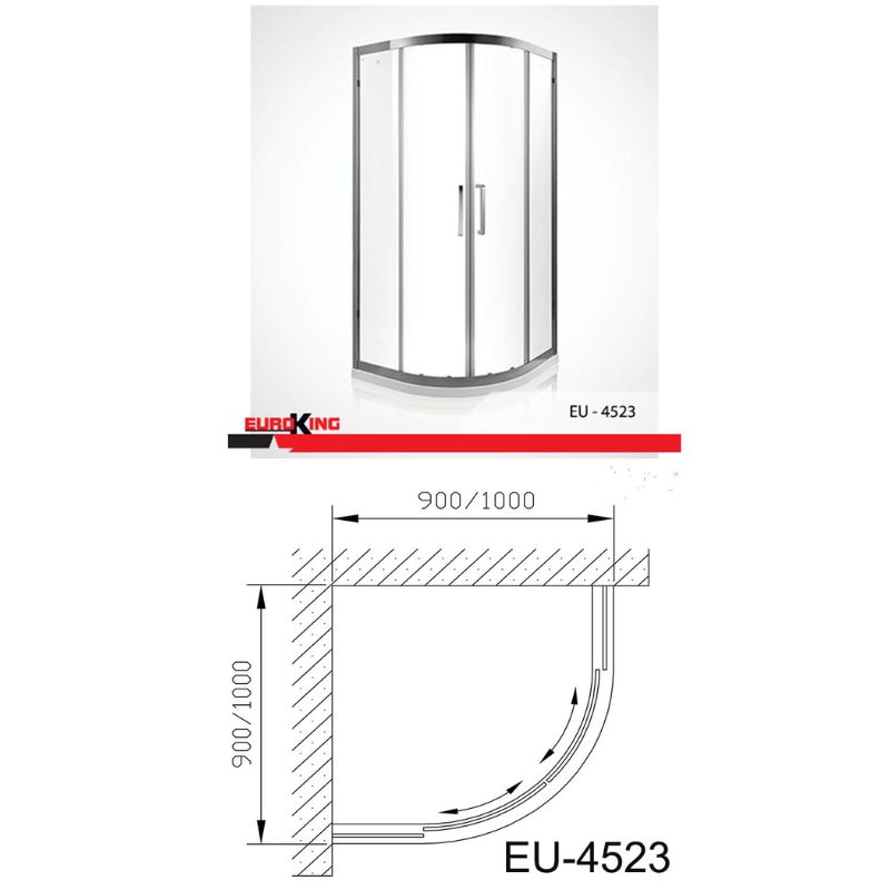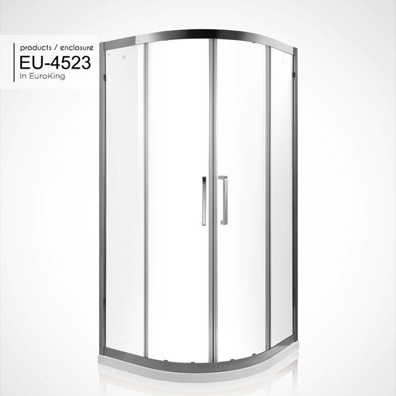 Phòng tắm vách kính EuroKing EU-4523 được thiết kế bề ngoài tinh tế với kính cường lực làm điểm nổi bật. Mặt kính trong suốt trang trí hoa văn hình khối đẹp mắt tạo nên vẻ ngoài sang trọng.