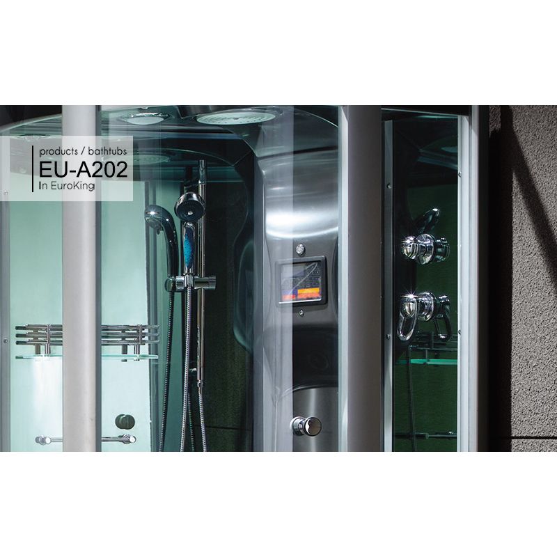 - EU-A202 đã vượt qua được cái mác một chiếc phòng xông hơi ướt bình thường khi mà nó còn được tích hợp thêm cả một hệ thống massage hiện đại. Tại ngay bảng mặt kính phía sau, bố trí 6 mắt massage châm cứu, xoa bóp đều đặn đến phần lưng nhức mỏi của chúng ta.