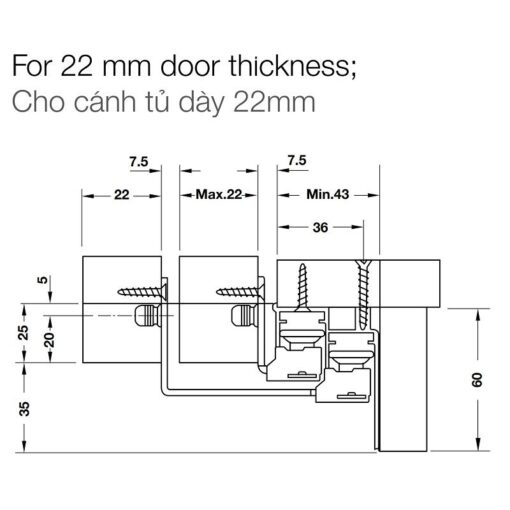 Phụ kiện cửa trượt tủ Slido Space Air 80VF Hafele 406.78.037