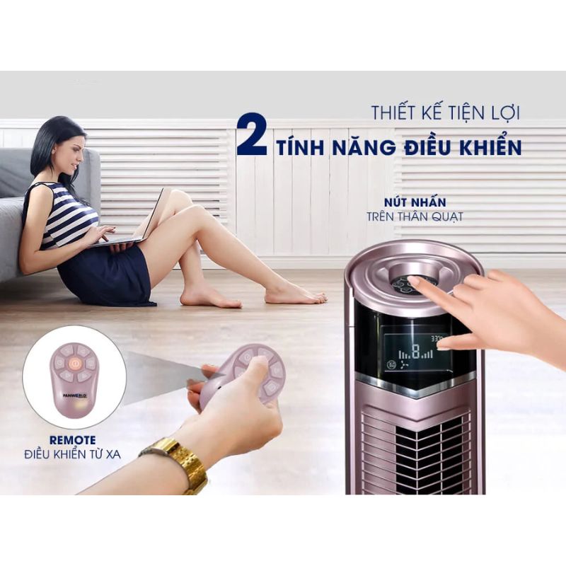 - Có màn hình LCD hiển thị và Remote điều khiển: Quạt được tích hợp màn hình LCD có hiển thị các chức năng và chế độ gió. Sản phẩm trang bị nút nhấn điều chỉnh dễ dàng hơn cho việc bật, tắt hoặc lựa chọn các chế độ. Ngoài ra quạt cũng kèm theo Remote điều khiển từ xa cực kỳ thuận tiện khi sử dụng. Người dùng không nhất thiết phải đến gần thì mới có thể điều chỉnh quạt mà chỉ cần dùng Remote bấm chọn chế độ là được.