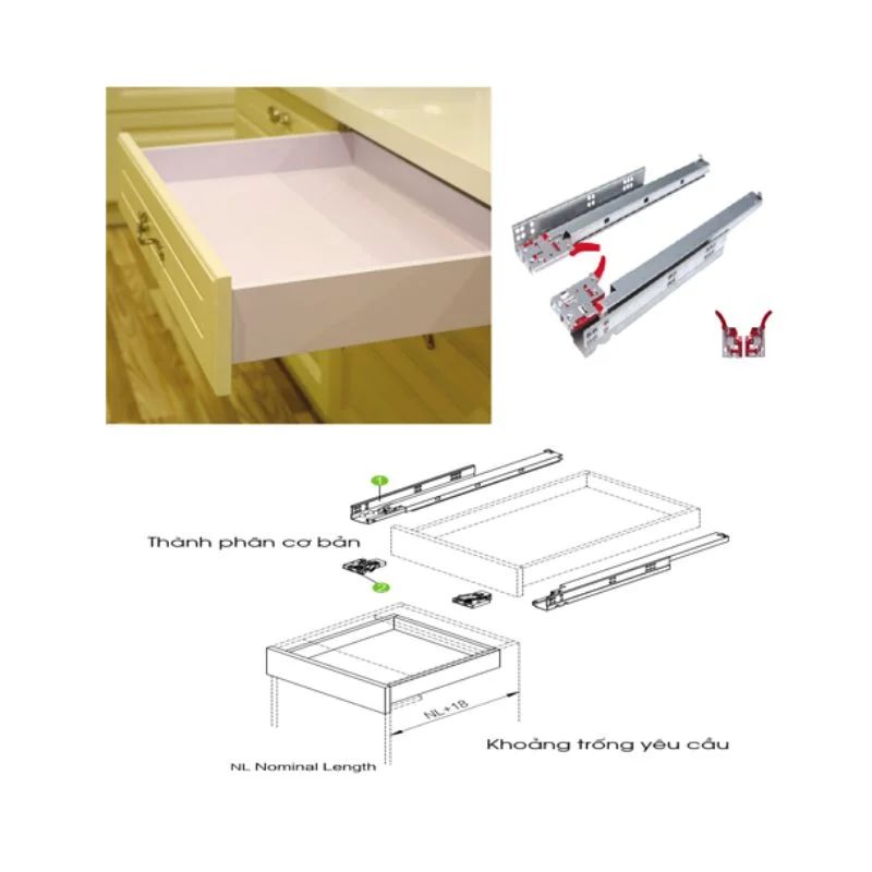 - Tải trọng: Được thiết kế để chịu lực lên đến 30kg, thích hợp cho các ngăn kéo có tải trọng nặng.