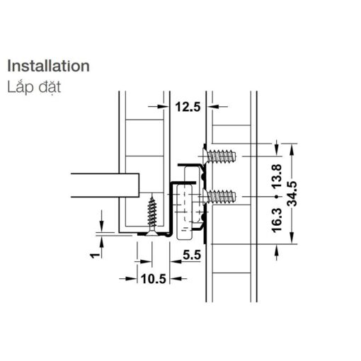 - Kích thước : chiều rộng ray hộp tối đa = chiều rộng lọt lòng + 25mm