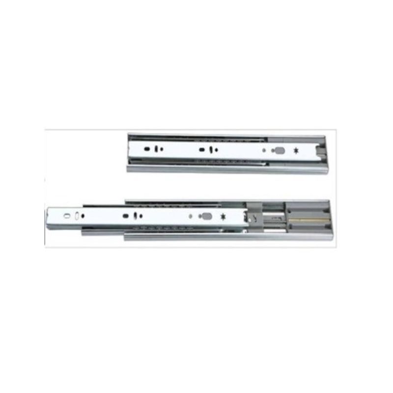 - Là loại ray bi thường được tích hợp thêm bộ piston giảm chấn giúp cho chuyển động kéo/ mở trở nên nhẹ nhàng, không gây tiếng ồn. Hơn nữa, dưới lực cản của piston dầu, cửa sẽ đóng từ từ. Do đó chúng hạn chế tối đa tình trạng kẹp tay hay va chạm mạnh gây hỏng tủ.