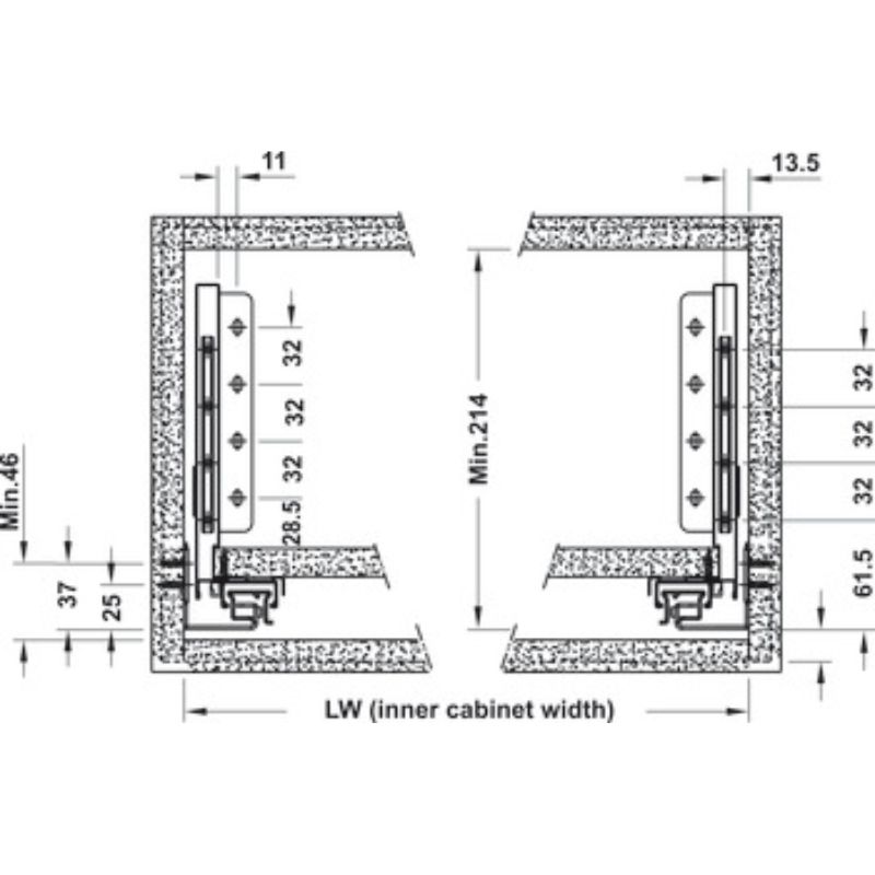 Thông số kĩ thuật của ray hộp Hafele AltoS H170 552.36.355