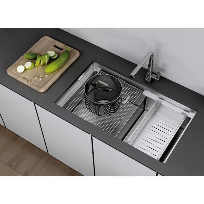 Thiết kế tiện ích: Kích thước 422 × 227 × 82 mm rộng rãi, phù hợp với nhiều loại chậu rửa. Lỗ rây phân bố đều giúp nước thoát nhanh, giữ thực phẩm khô ráo và sạch sẽ.