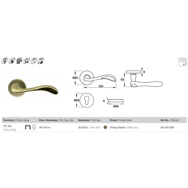 - Lưu ý: Cần kết hợp với thân khóa và ruột khóa để hoàn thiện bộ khóa