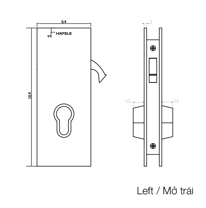Thông tin của thân khóa cửa trượt kính mở trái Hafele 981.59.100