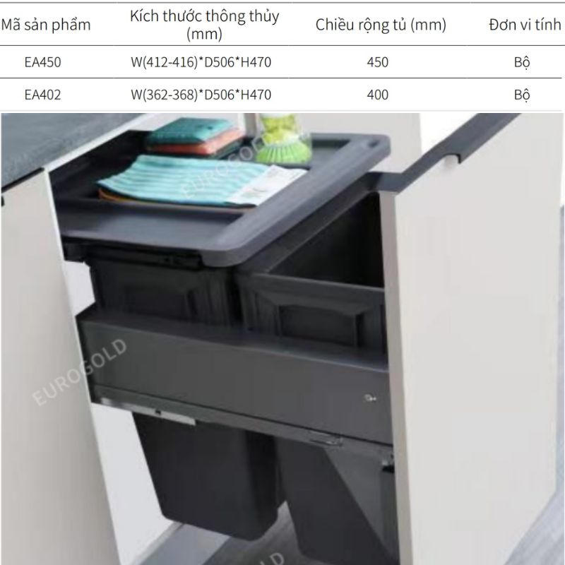 - Chỉ cần kéo cánh tủ ra (vào) là thùng tự động ra (vào) theo để bạn cho rác vào mà không sợ bẩn tay, cực tiện lợi khác hẳn những chiếc thùng thông thường.