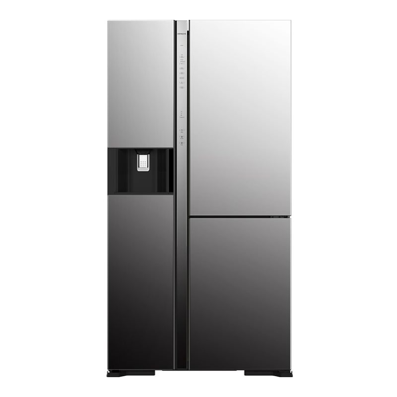 - Thiết kế: Hitachi MY800GVGV0 MIR thuộc dòng tủ lạnh lớn – Side by side có 3 cánh cửa, thiết kế thanh lịch từ bên trong đến bên ngoài, các chi tiết tinh tế, tông màu xám thời thượng, tạo điểm nhấn cho gian bếp thêm cao cấp, hiện đại. Cửa tủ lạnh sử dụng mặt kính nguyên khối thiết kế phẳng tràn viền sáng đẹp, góp phần nâng cao tính thẩm mỹ cho thiết bị và không gian bố trí. Dung tích sử dụng 569 lít, lựa chọn phù hợp dành cho các hộ gia đình có trên 5 người, hoặc gia đình ít thành viên hơn nhưng có nhu cầu lưu trữ thực phẩm nhiều hoặc phục vụ cho nhu cầu kinh doanh.