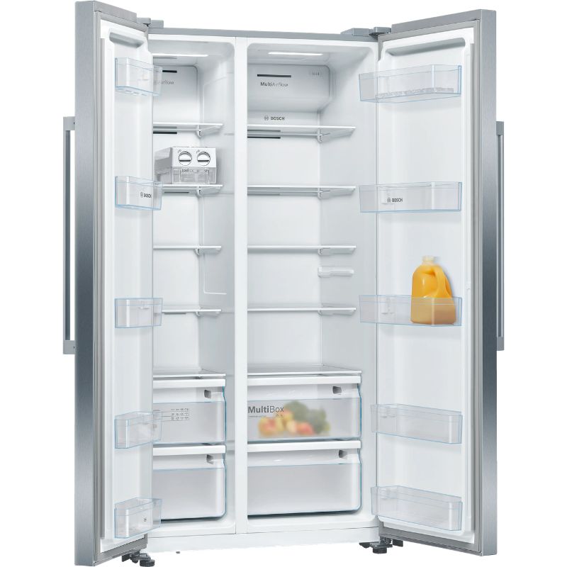 Tủ lạnh Bosch KAN93VIFP Serie 4 là dòng Side by Side cao cấp với thiết kế thép không gỉ chống bám vân tay hiện đại, mang lại vẻ sang trọng cho không gian bếp. Dung tích lớn khoảng 560L giúp đáp ứng tốt nhu cầu lưu trữ thực phẩm cho gia đình đông người hoặc sử dụng thường xuyên. Sản phẩm tích hợp công nghệ NoFrost chống đóng tuyết, kết hợp hệ thống làm lạnh đa chiều giúp thực phẩm luôn tươi ngon.