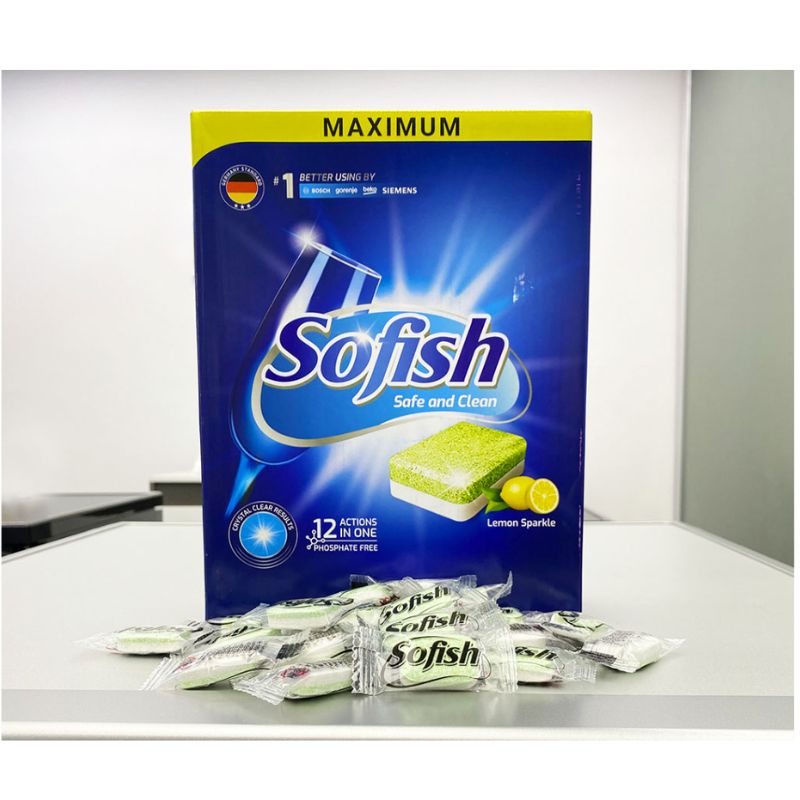 - Viên rửa bát Sofish Maximum là dòng sản phẩm đạt tiêu chuẩn EU, đảm bảo an toàn sức khỏe, thân thiện môi trường.