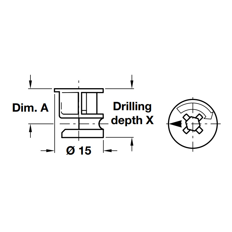 Thông tin sản phẩm của vỏ nối Minifix 15 không vành Hafele 262.26.532