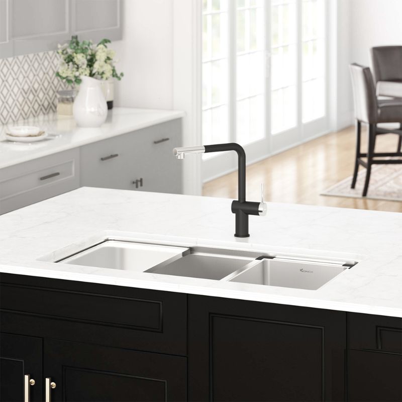 - Thiết kế vòi tinh tế, thân vòi nằm ngang với bàn bếp: Vòi rửa bát Stella Black mang đến không chỉ sự tinh tế mà còn sự sang trọng với thiết kế cong mềm mại. Thân vòi được thiết kế ngang giúp dễ dàng điều chỉnh hướng dòng nước theo ý muốn của bạn. Tay cầm được thiết kế ngang vừa tầm sử dụng, phù hợp với đại đa số người dùng châu Á. Với chiều cao thân vòi là 461mm chiều cao lý tưởng là 267mm từ mặt chậu đến đầu vòi, và khả năng kéo dài 76cm, Stella Black không chỉ là lựa chọn hoàn hảo cho không gian nhà bếp của bạn mà còn là điểm nhấn thẩm mỹ không thể thiếu.